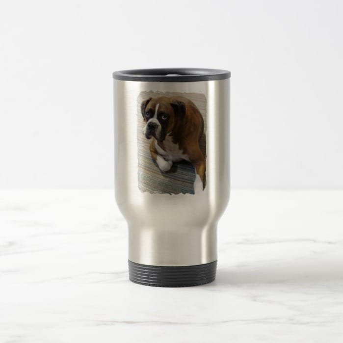 Boxer Dog Stainless Travel Mug – Boxer dog lying in the grass.