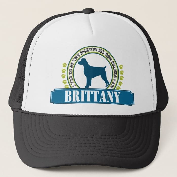 Brittany Trucker Hat – Our dogs look at us like we are the only person in the world that matters! This colorful design features your choice of a silhouette of over 75 different AKC dog breeds with the text: “I try to be the person my dog thinks I am.” Visit our main store at ThinkyTees.com for a huge selection of tees and gift items for the Military, Fishing, Dog, Cat, Bird, Garden, or History enthusiasts in your life!