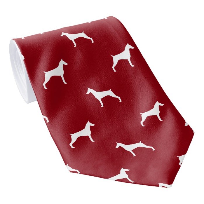 Doberman Pinscher Silhouettes Pattern Red Tie –