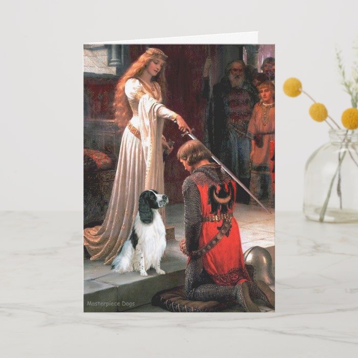 Engilsh Springer 7 – The Accolade Card – The Accolade by Edmund Blair Leighton (1853-1922) – painted in 1901, adapted to include an English Springer Spaniel, one of the most romantic masterpieces of our time.
