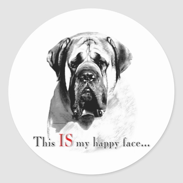 Mastiff Happy Face Sticker – A comical take on your Mastiff’s expression. This IS my happy face dog design features the English Mastiff. Any dog lover will appreciate this fun design.