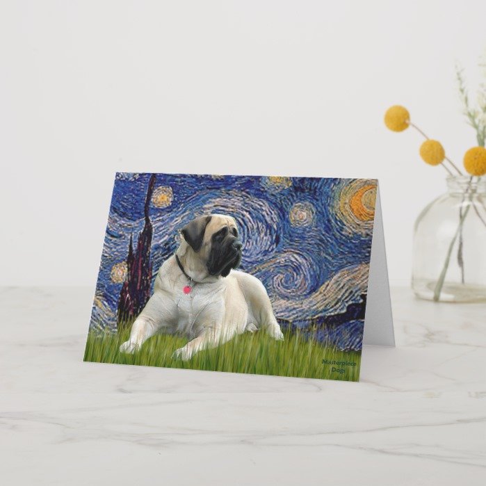 Starry Night – Bull Mastiff (lying down) Card – Starry Night by Vincent Van Gogh, now adapted to include a Bull Mastiff.