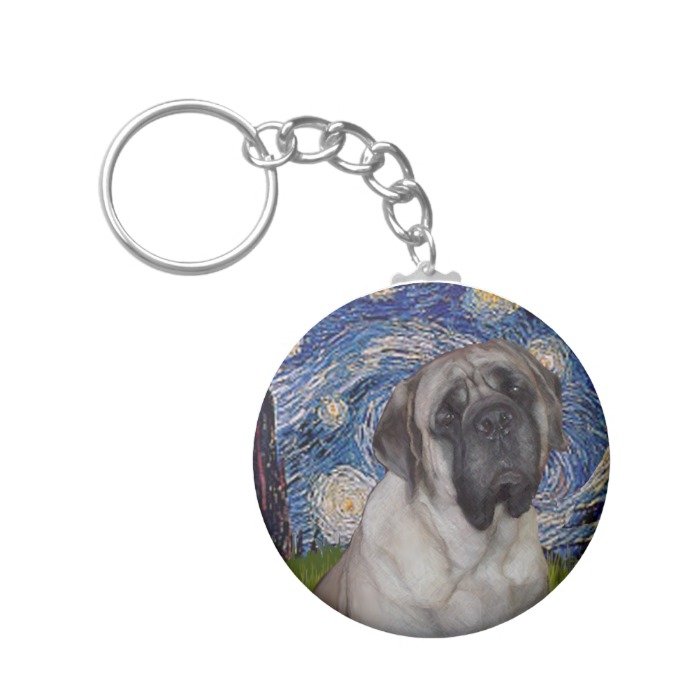 Starry Night – Bull Mastiff Portrait Keychain – Starry Night by Vincent Van Gogh, now adapted to include a Bull Mastiff.