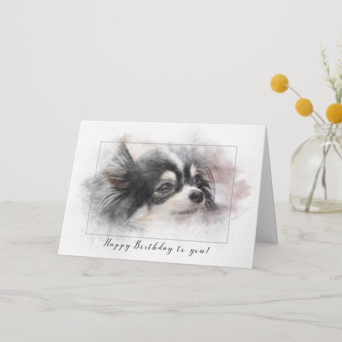 Pomeranian dog birthday card – black and white Pomeranian dog in textured frame for general birthday