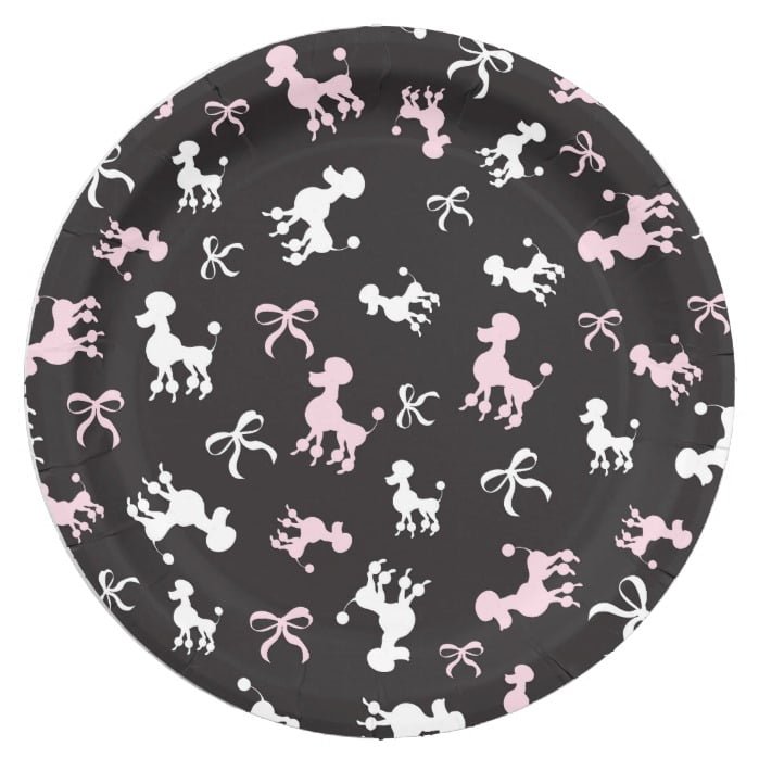 Sassy Poodles Paper Plate – Lovely paper plates with a sassy poodle design, these plates features a black background with pink and white poodles. Make them yours today!