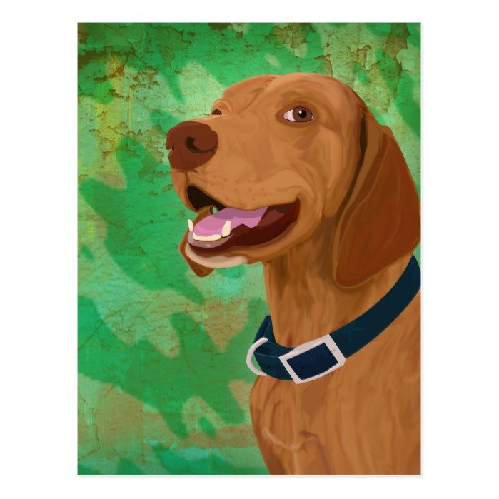 Smiling Brown Vizsla on Green Background Postcard – Smiling Vizsla dog, digitally painted on an urban green background. Artistically created for real dog lovers!
