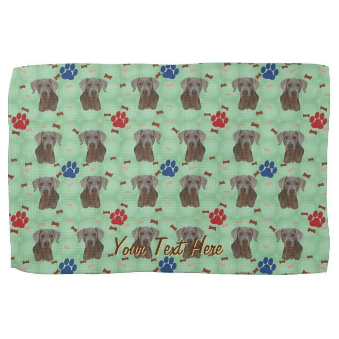 Weimaraner Portrait Kitchen Towel – A Weimaraner with a scattering of bones and paw tracks. This design is intended to tile seamlessly.